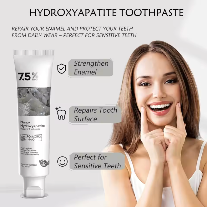 Over 9 out of 10 dentists now recommend hydroxyapatite toothpaste as a safer, more advanced alternative to fluoride. Clinically proven to rebuild enamel, close micro-cracks, and prevent cavities before they start, this formula is trusted in modern dental clinics worldwide.
